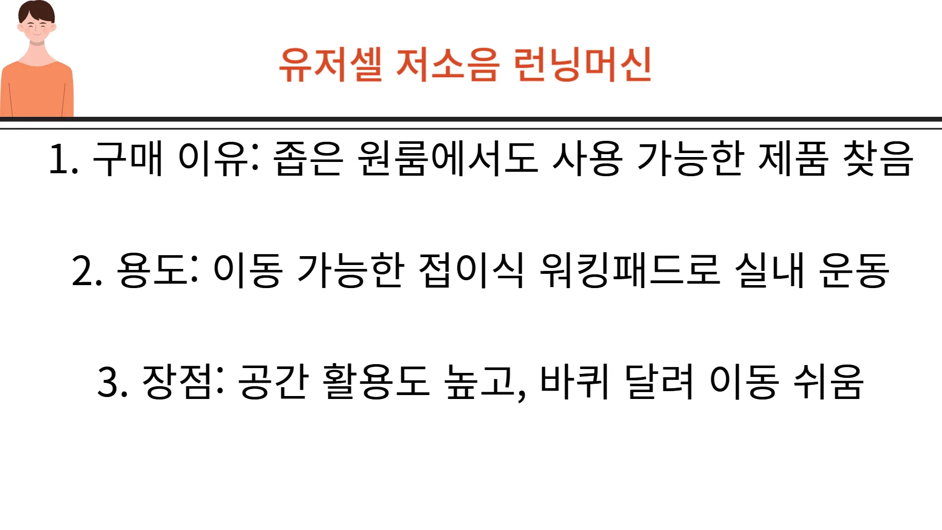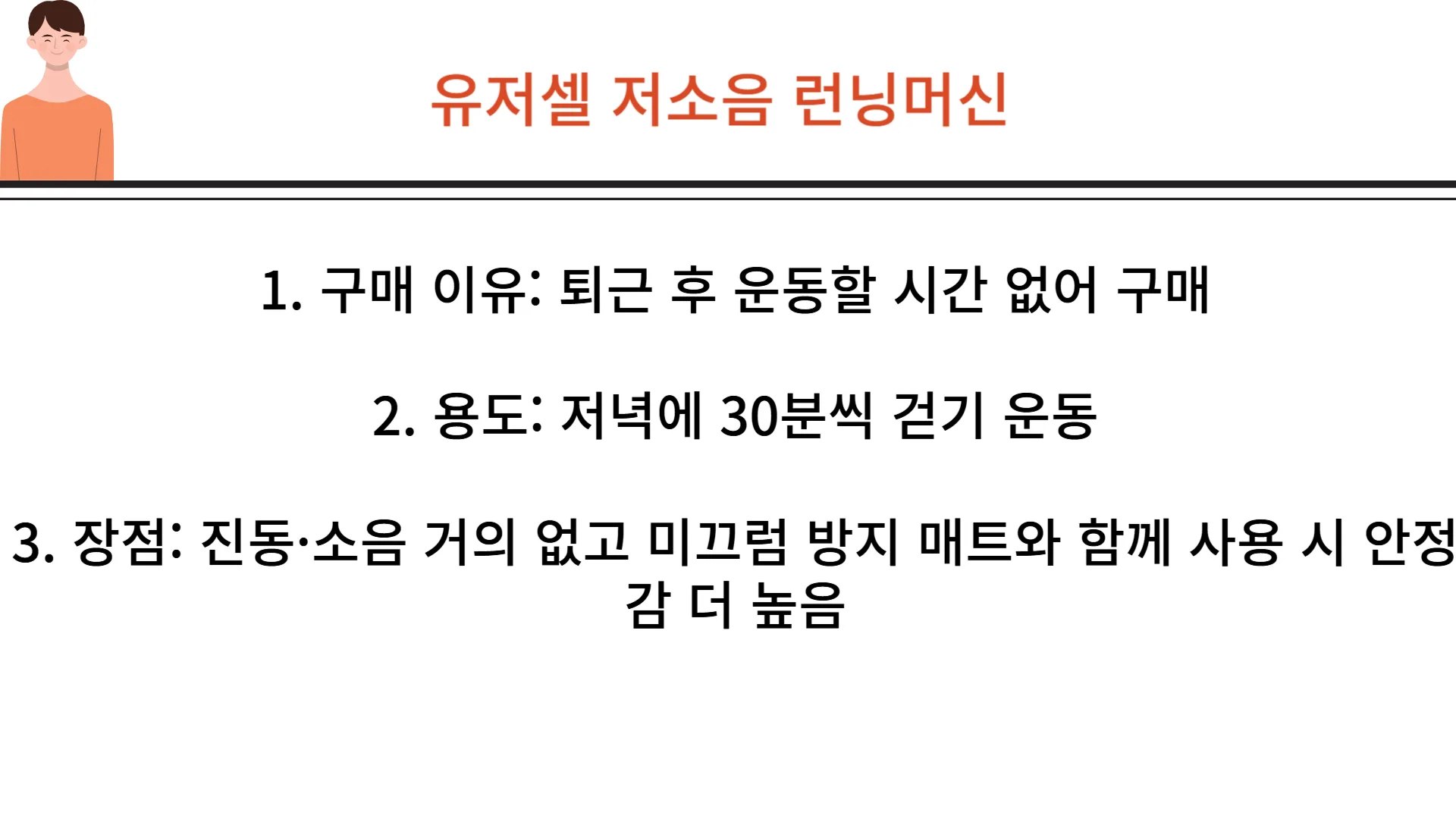 먼저, 운동에 있어서 습관이 매우 중요하죠. 그리고 가정에서 사용하기 때문에 시끄럽다면 사용하는데 문제가 발생할 수 있을 것입니다.